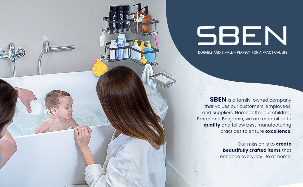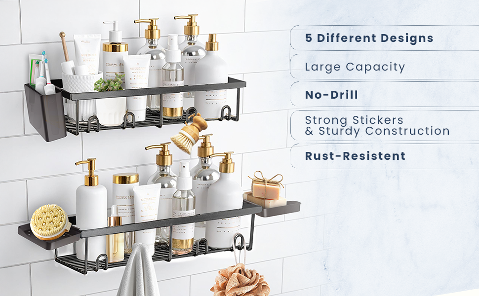 SBEN Shower Caddy Adhesive, 5 Pack Organizer Rustproof, Carbon Steel Bathroom Shelves, Large Capacity No-Drill, Rack Storage Accessories with 2 Soap Dish, Toothbrush Holder and 8 Hooks Home Decor