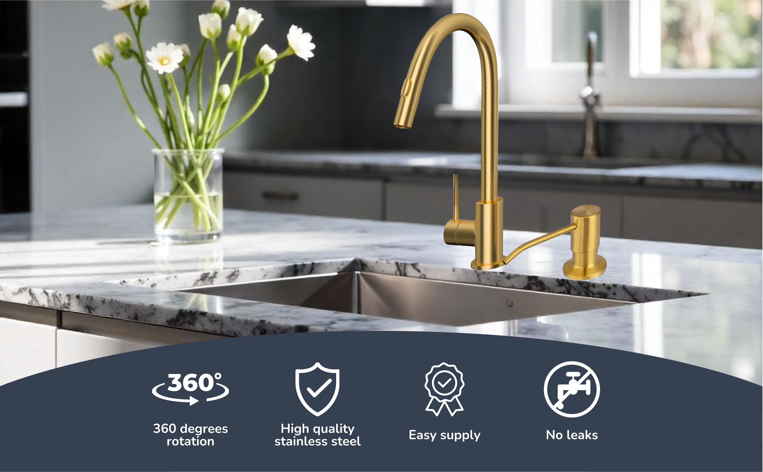 SBEN Kitchen Sink Soap Dispenser – Countertop Pump for Hand Soap or Lotion, Built-in Bottle, Upgraded Stainless Steel Design with Easy Screw Installation