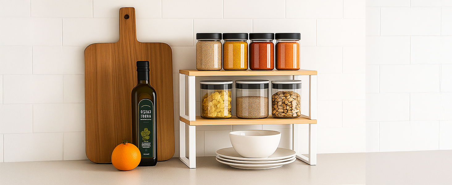 Sben Kitchen Shelf Cabinet Organizer, Set of 2, Counter Shelves, Kitchen Storage, Spice Rack, Stackable, Functional, Metal and Engineered Wood